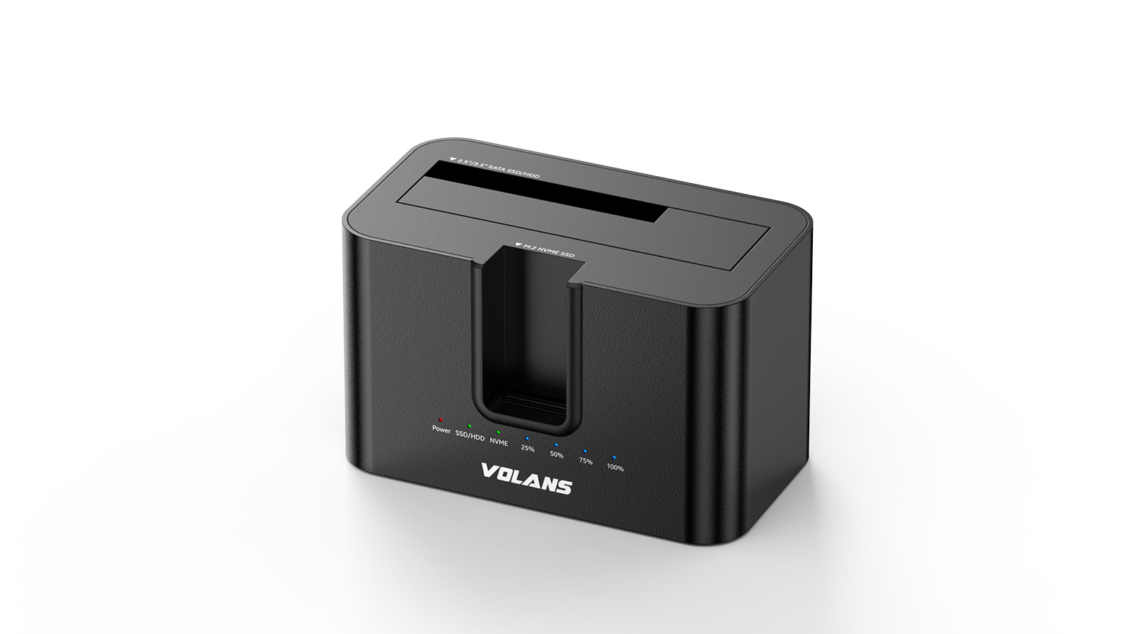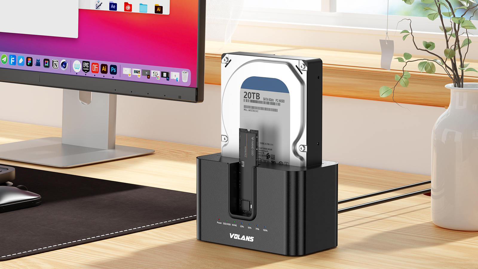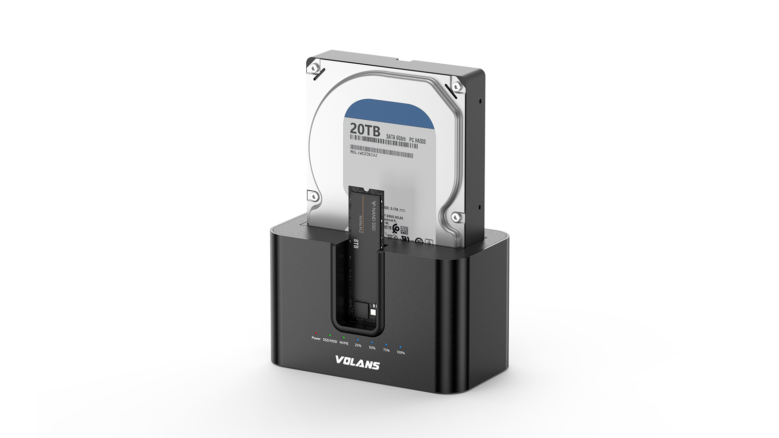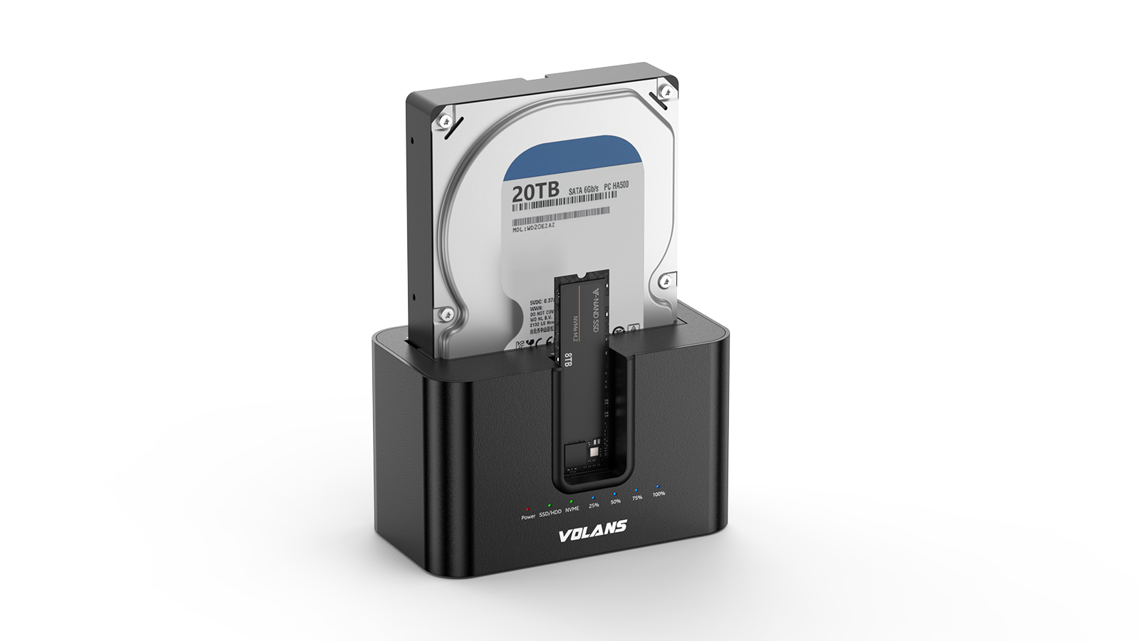 VOLANS VL-DS50S Dual Bay USB-C Aluminium Docking Station for 2.5″/3.5″ HDD + M.2 SSD with Clone